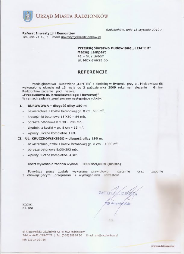 - Przebudowa ul. Anieli Krzywoń w Radzionkowie – wykonanie kanalizacji deszczowej oraz roboty drogowe