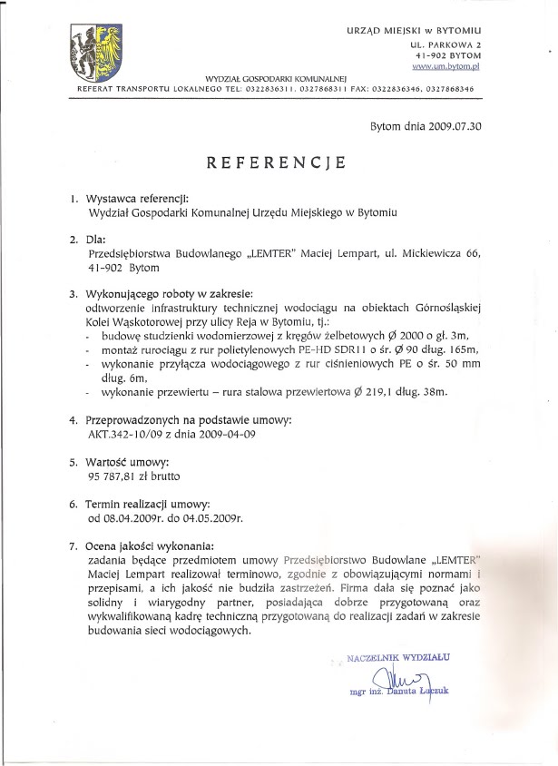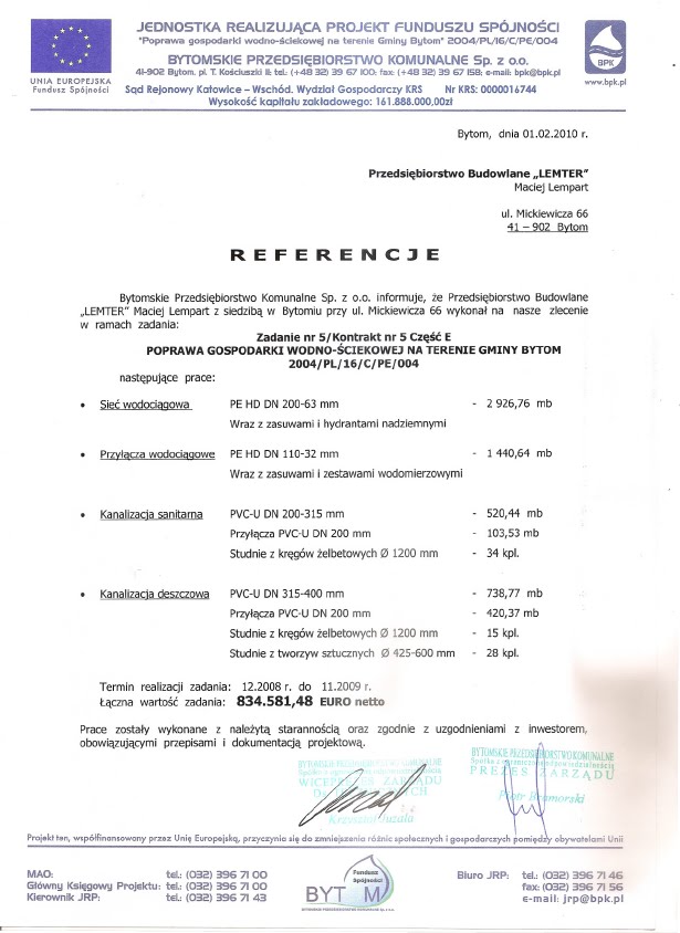 - Poprawa gospodarki wodno-ściekowej na terenie gminy Bytom